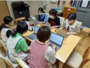 | 中間報告会後 | 無線LANの⼯事が終了し、各クラス、保育室で作業 。 「職員への対⾯ヒアリング 」を実施し、今回の取り組みや、次年度以降の働き方改革について個別に意⾒を伺った。 |