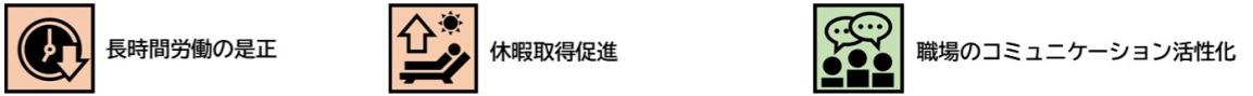 ⇒長時間労働の是正を継続して進める。 工程管理をしっかりし、休日の予定を立てやすくする。